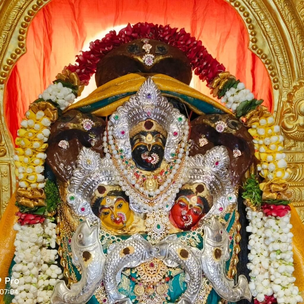 At the heart of Sri Sri Sri Ambaathraya Kshetram is a unique and divine idol of Devi, a composite manifestation of Mahakali, Mahalakshmi, and Mahasaraswati. This sacred triad embodies the fundamental energies of the universe: